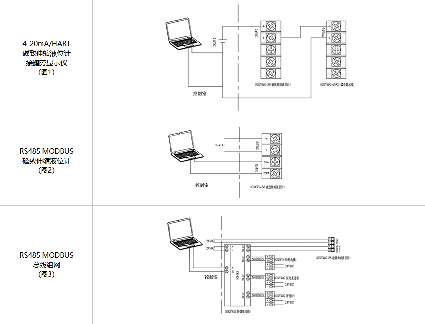 輸出信號4-20mA/HART、RS485 MODBUS可選,可現場指示和遠程進入PLC或DCS系統